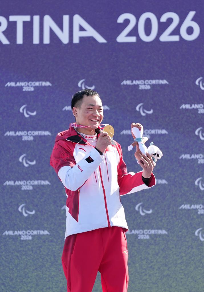 新华社意大利科尔蒂纳丹佩佐3月8日电(记者郑直、李春宇、焦子琦)8日的米兰-科尔蒂纳冬残奥会残奥单板滑雪男子障碍追逐LL1级项目的颁奖仪式过后,武中伟举起手机,以环绕赛场的山峰为背景,给手中的金牌和吉祥物拍了一张照。尽管自己并未入镜,但整个采访区都能看得见他脸上的微笑。