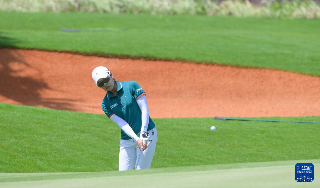 3月8日,中国选手何沐妮在比赛中。最终,她以290杆、高于标准杆2杆的总成绩获得并列第28。