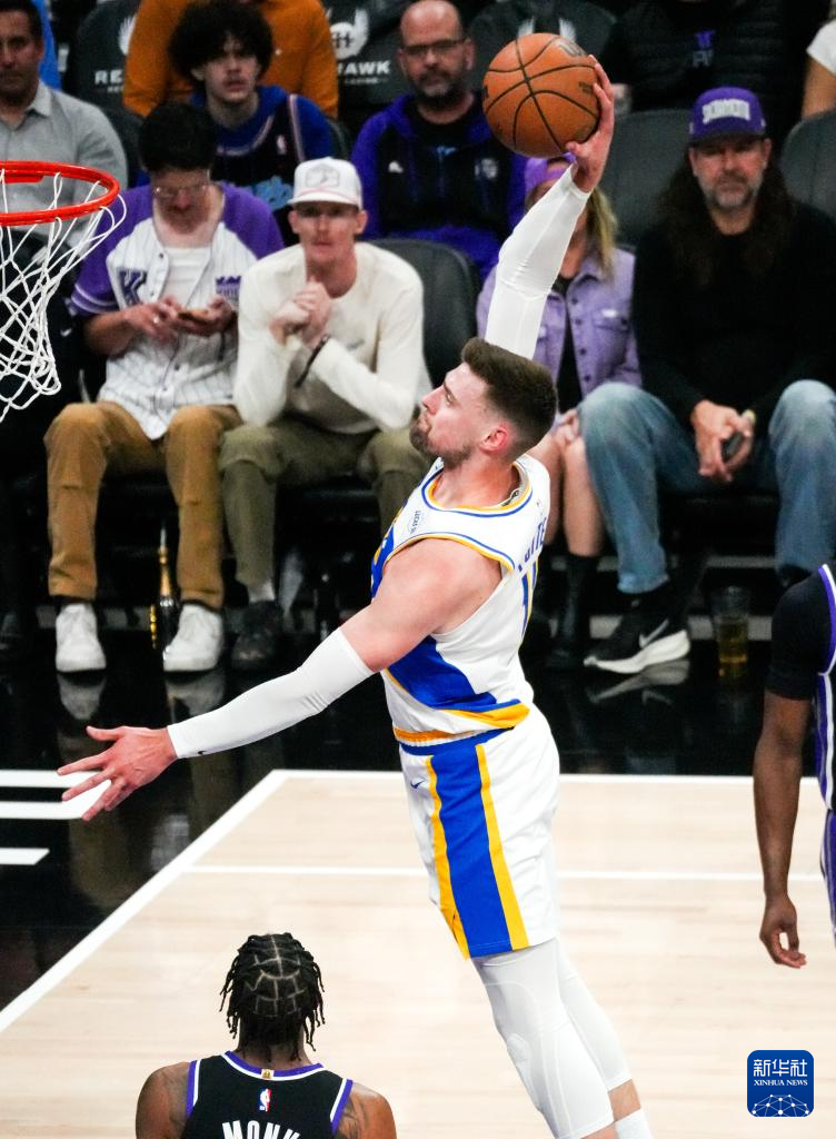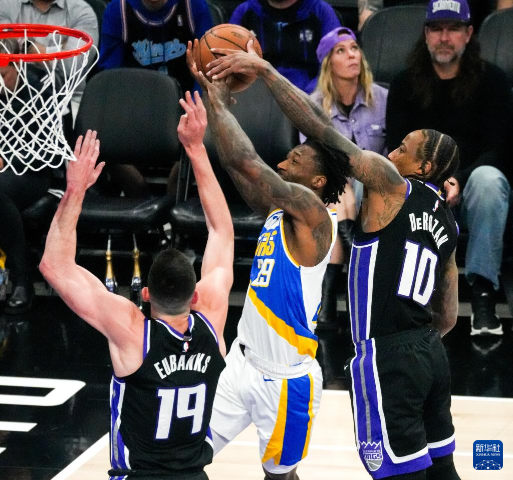 3月10日,国王队球员德鲁·尤班克斯(中)在比赛中上篮。