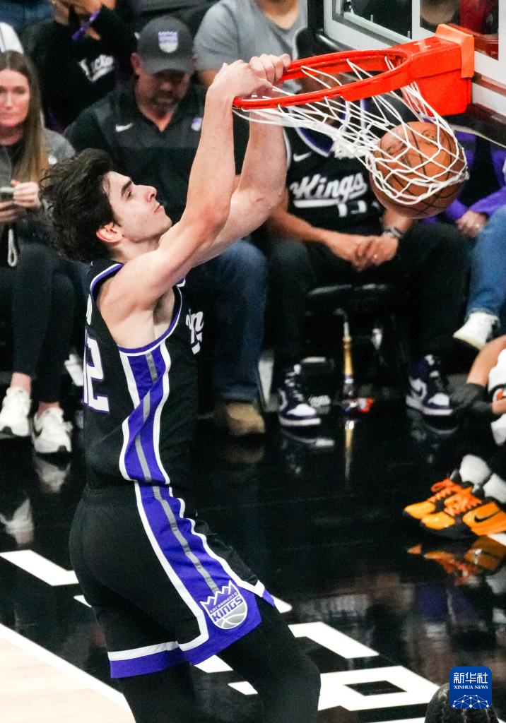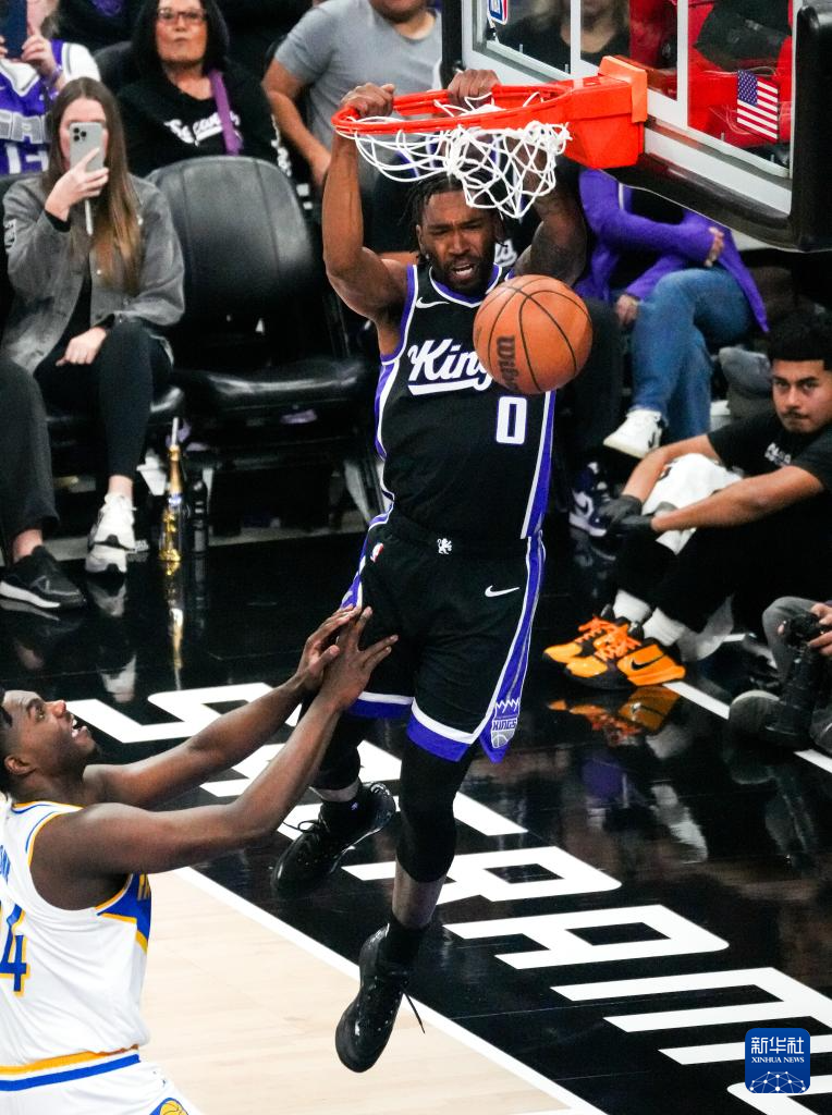 3月10日,国王队球员马利克·蒙克在比赛中扣篮。