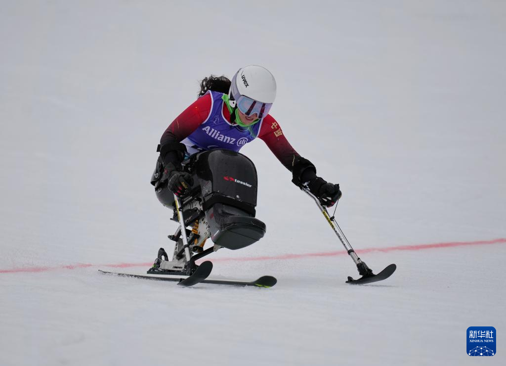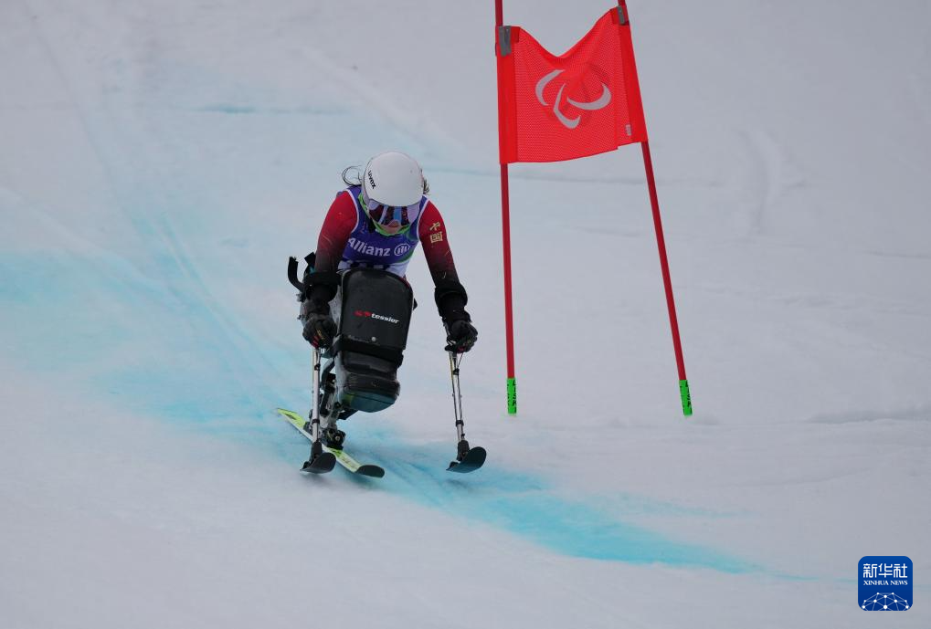 当地时间3月12日,在意大利科尔蒂纳举行的米兰-科尔蒂纳冬残奥会高山滑雪女子大回转(坐姿)比赛中,中国选手刘思彤获得铜牌。