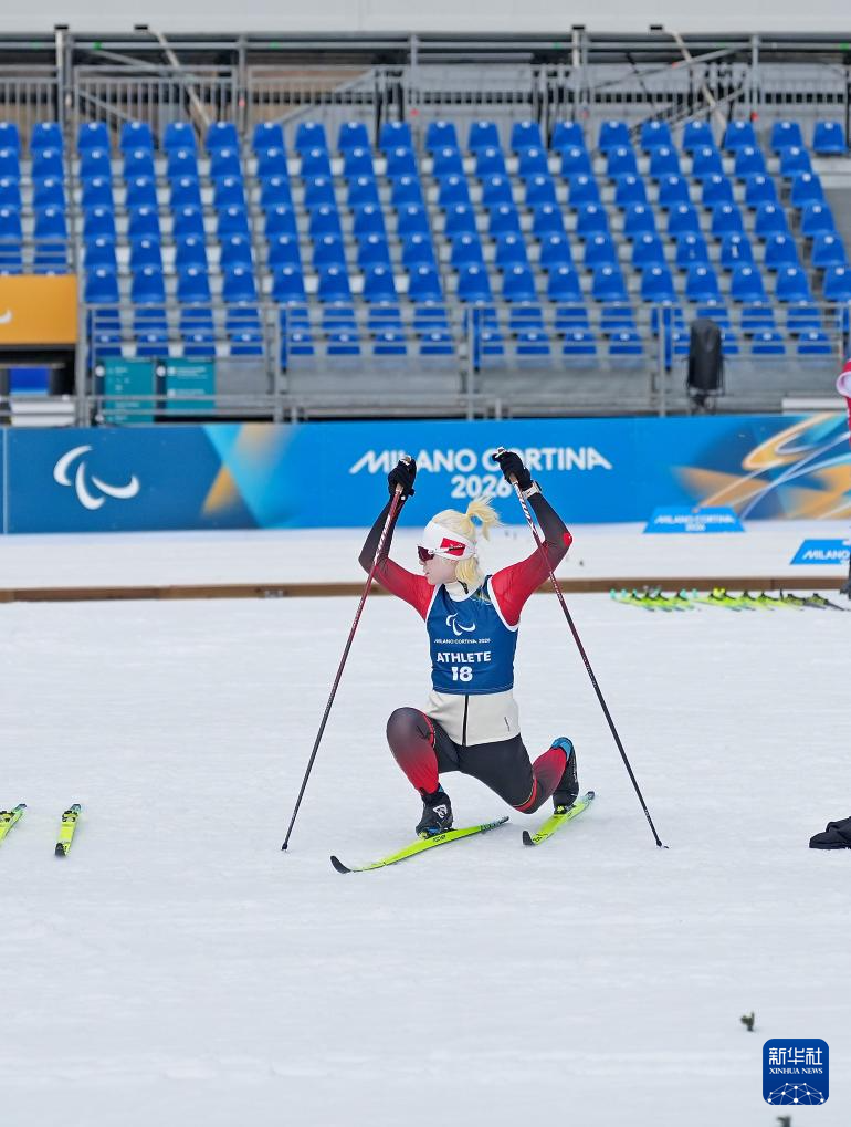 3月11日,中国选手单怡霖在米兰-科尔蒂纳冬残奥会越野滑雪女子中距离(坐姿)比赛中获得第七名。新华社记者 侯昭康 摄