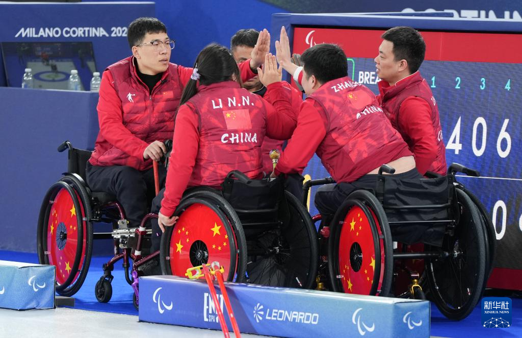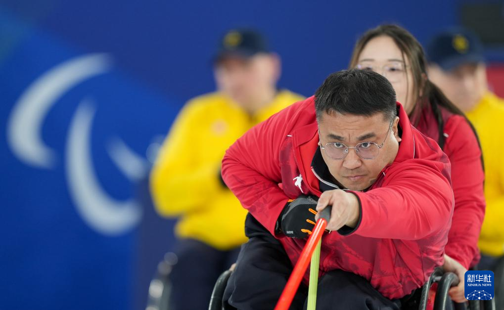 当地时间3月12日,在意大利科尔蒂纳举行的米兰-科尔蒂纳冬残奥会轮椅冰壶混合团体循环赛中,中国队12比3战胜瑞典队。