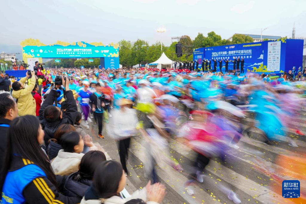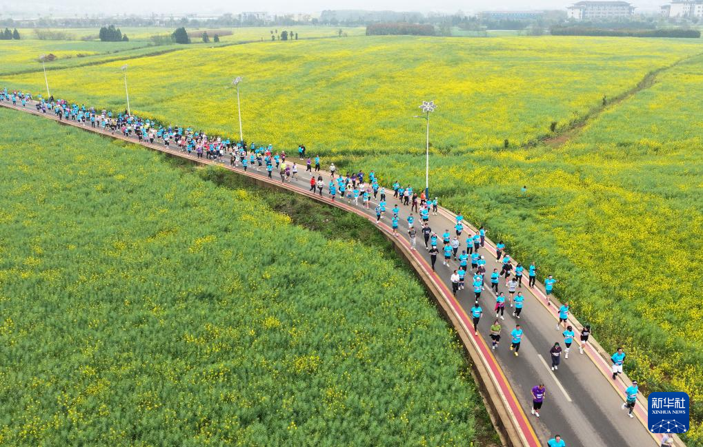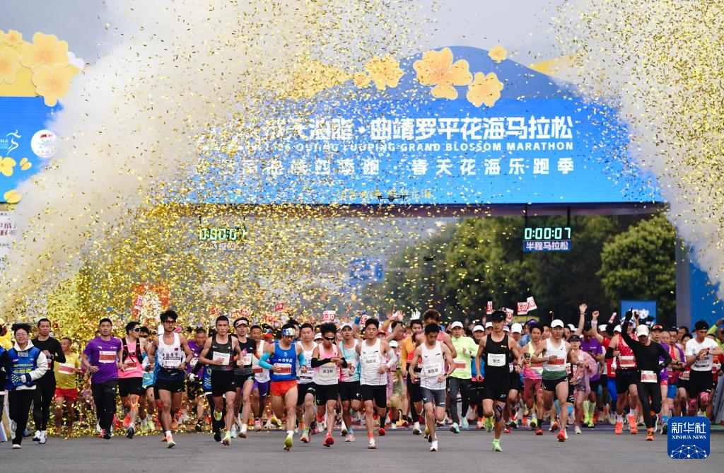 3月15日,2026曲靖罗平花海马拉松在云南省曲靖市罗平县鸣枪开跑。
