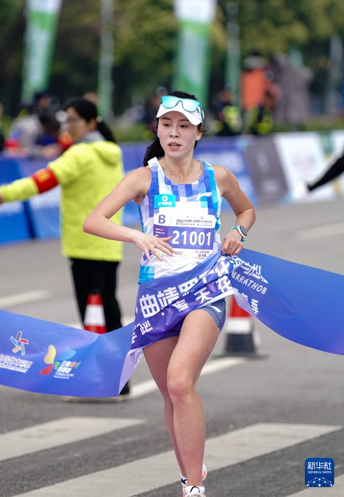 3月15日,张开琴在比赛中冲线。她最终获得女子半程马拉松冠军。