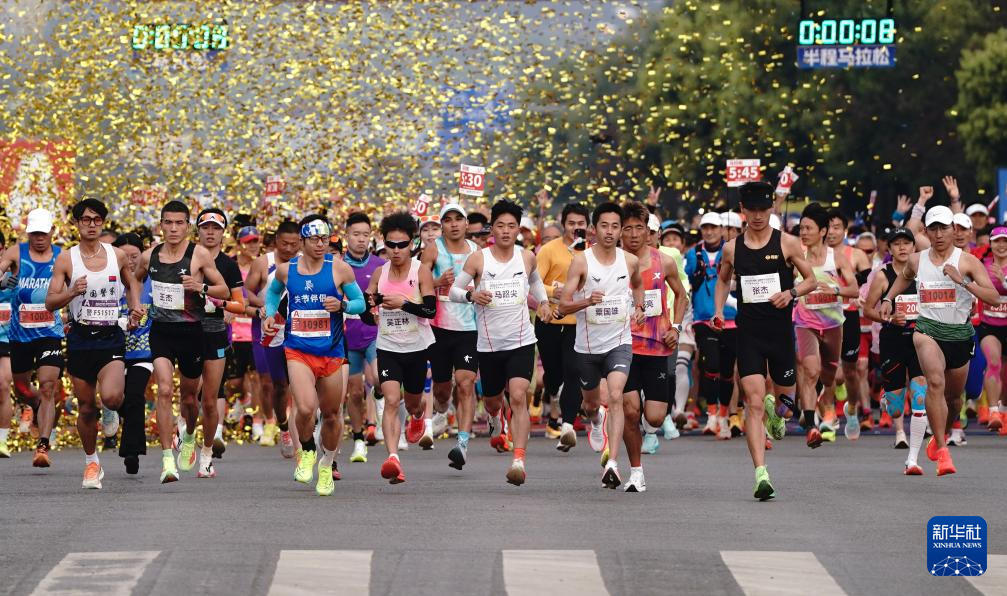 3月15日,包毕力格在比赛中冲线。他最终获得男子半程马拉松冠军。