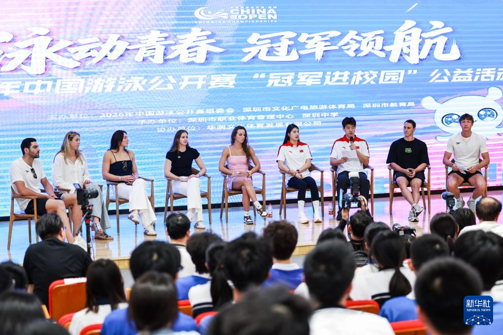 3月18日,2026年中国游泳公开赛“冠军进校园”公益活动在深圳中学举行。