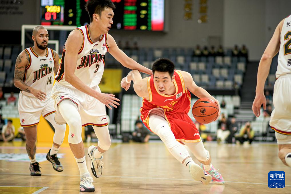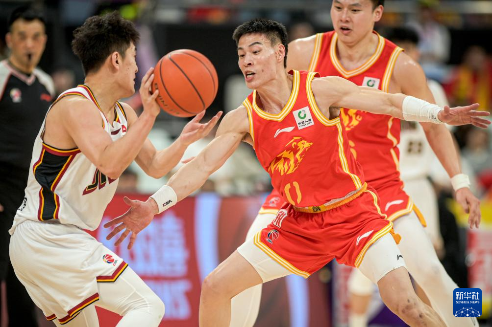 3月18日,浙江浙商证券队球员朱俊龙(右)在比赛中突破。