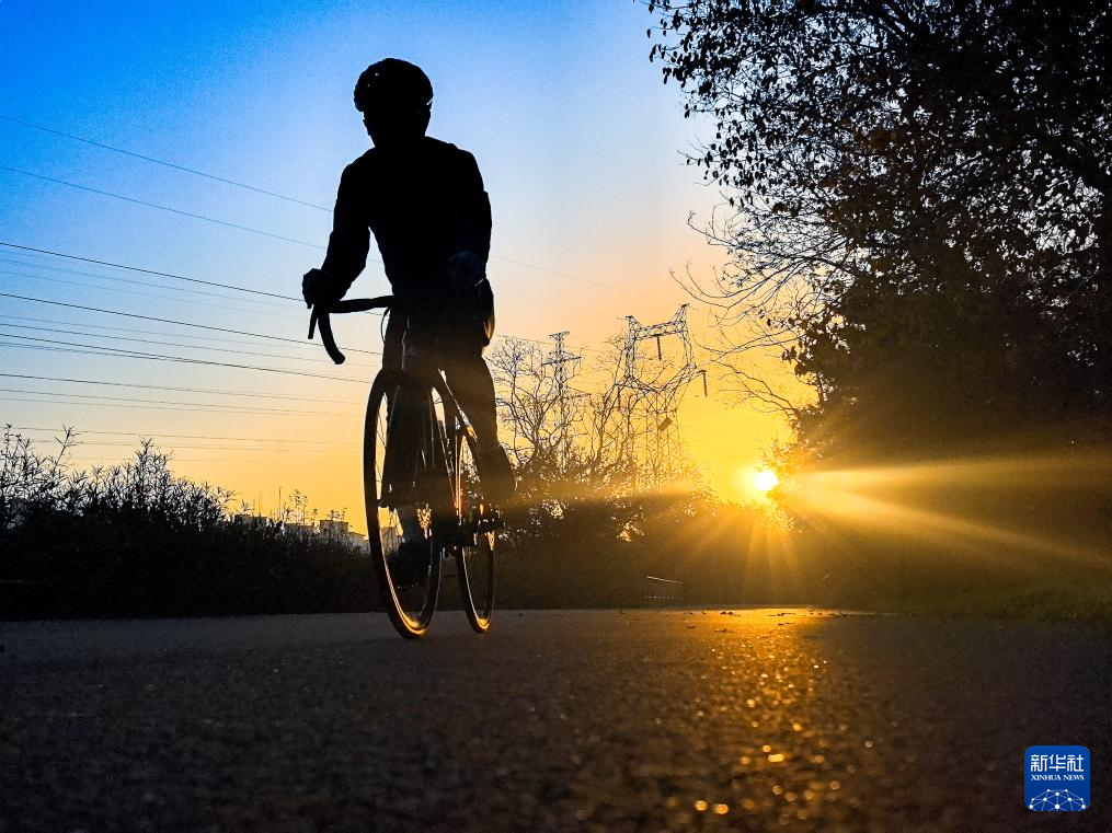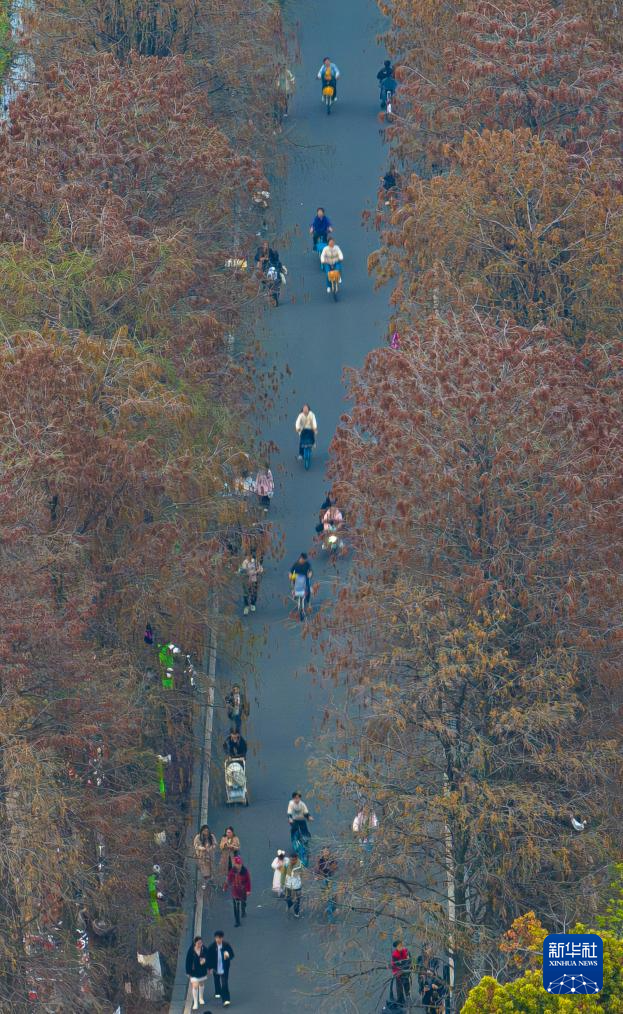市民在武汉市东湖绿道骑行(2025年11月29日摄)。