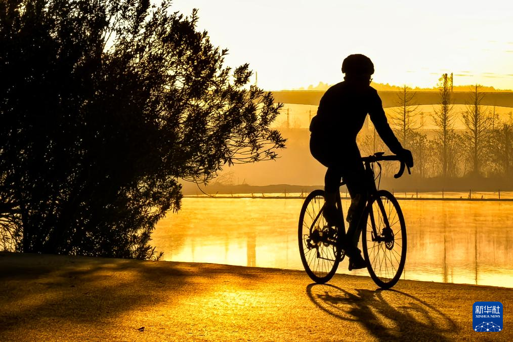 市民在武汉市东湖绿道骑行(2025年12月14日摄)。