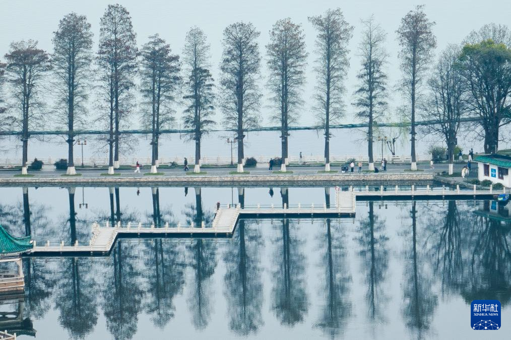 市民在武汉沙湖公园锻炼(3月21日摄)。