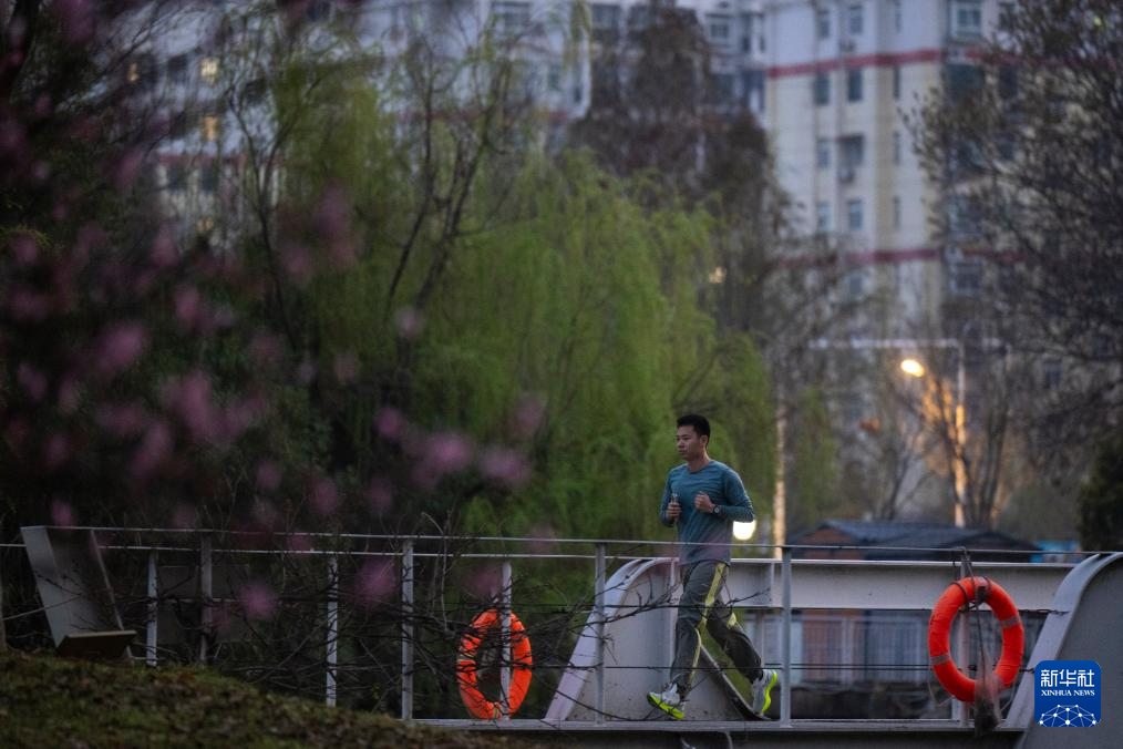 市民在武汉沙湖公园跑步(3月21日摄)。