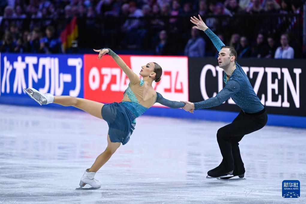 3月26日,德国组合黑泽(右)/沃罗登在比赛中。最终,他们获得双人滑冠军。