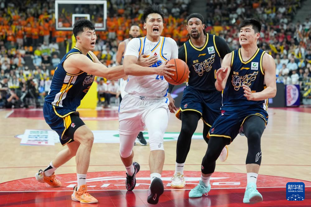 3月27日,广东东阳光队球员胡明轩(右二)在比赛中突破。