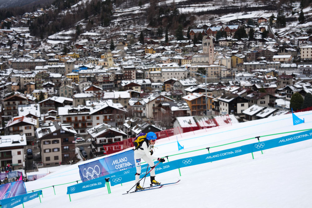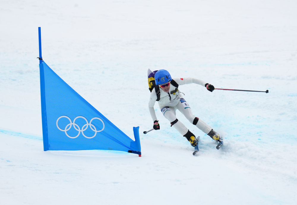 中国队选手次旦玉珍在米兰冬奥会滑雪登山混合接力项目比赛中。新华社记者 颜麟蕴 摄