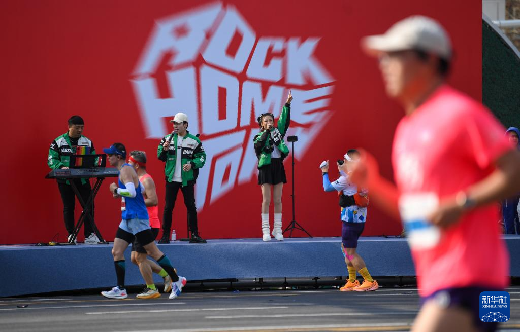 3月29日,摇滚乐队为参赛选手助威。