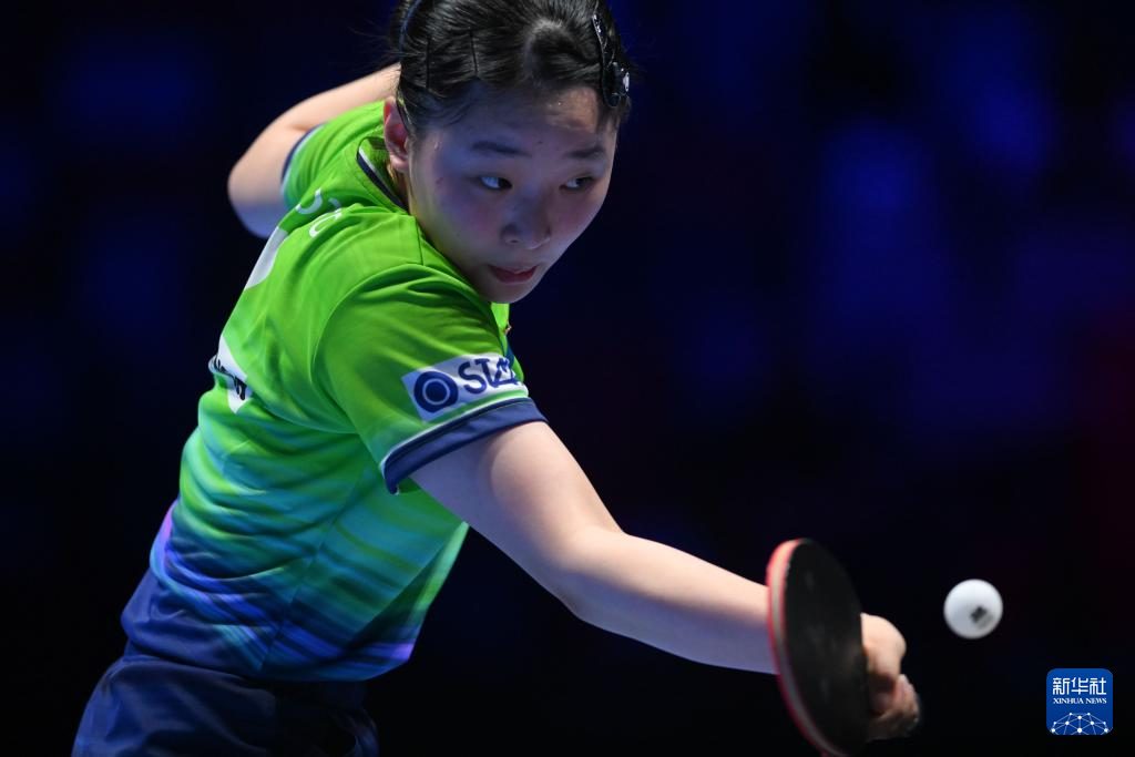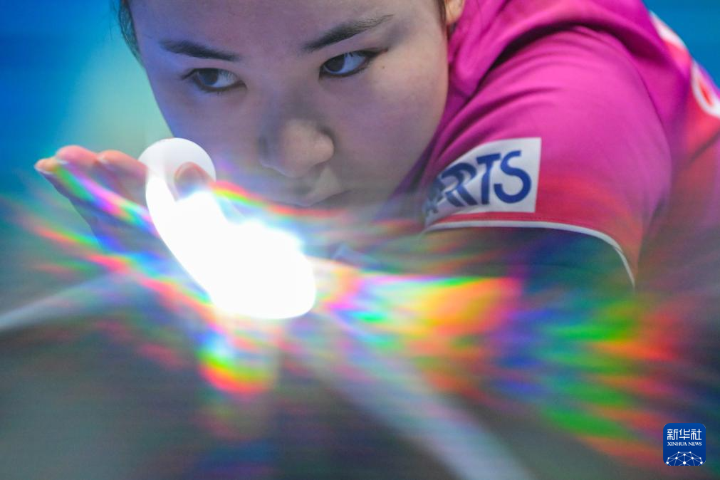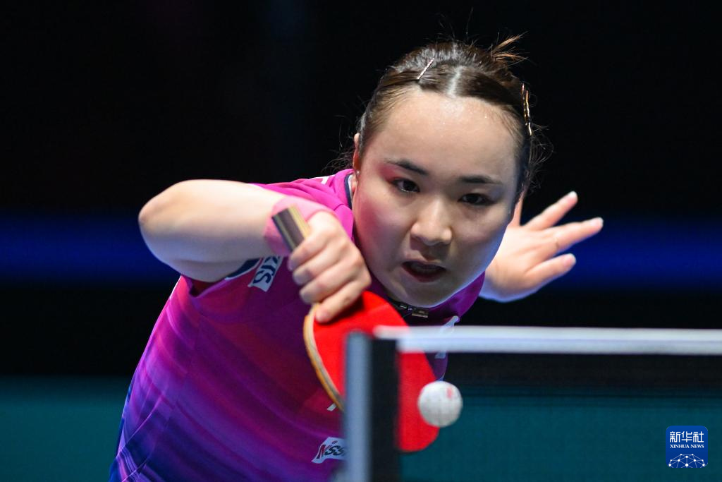 3月30日,日本选手张本美和在女子单打小组赛中回球。最终,她3比0战胜印度选手马妮卡·巴特拉。