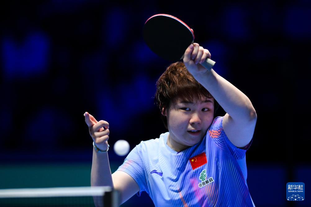3月30日,中国选手蒯曼在女子单打小组赛中回球。最终,她3比2战胜法国选手夏洛特·卢茨。
