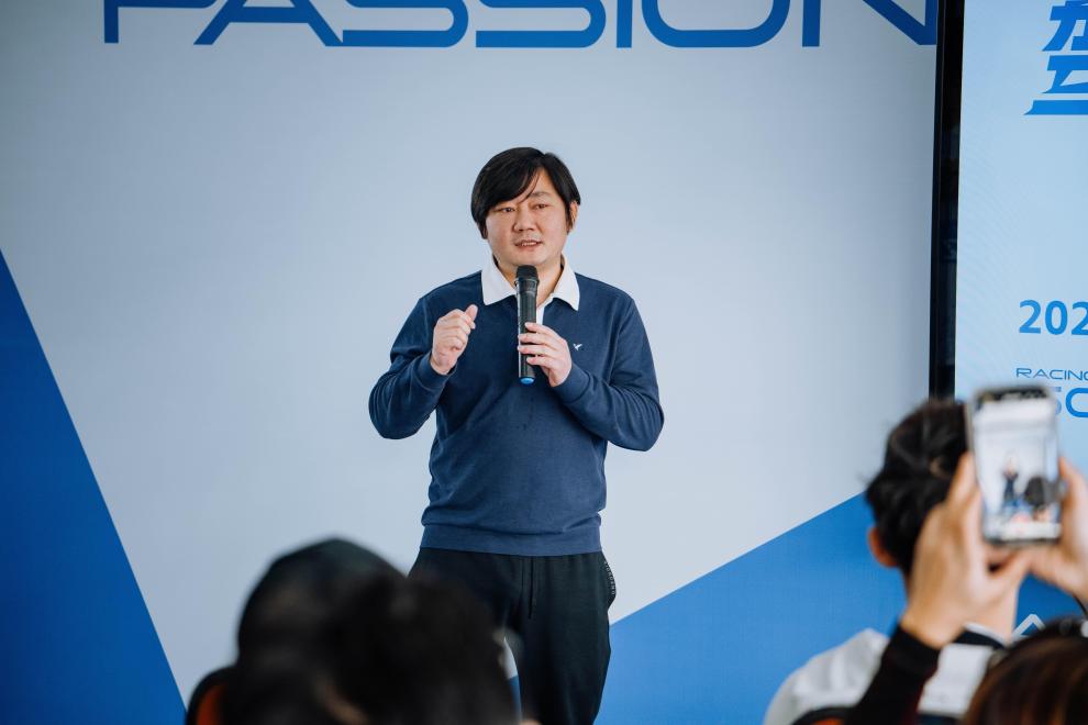 2025年1月16日,张雪(中)在广东珠海国际赛车场与车手交流。