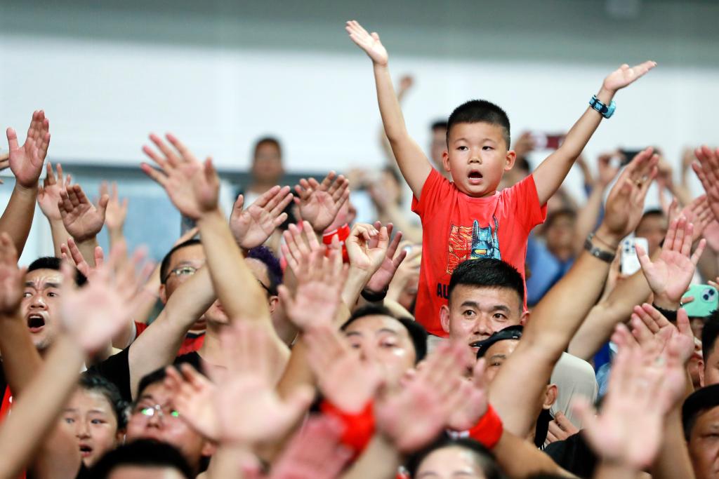 小球迷在江苏南通举行的2025年“苏超”四分之一决赛中为球队加油助威。新华社发(徐昌政 摄)