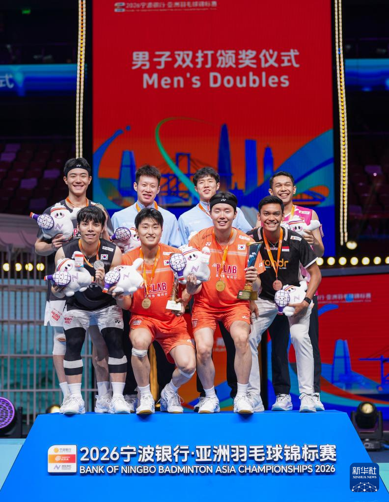 4月12日,2026年亚洲羽毛球锦标赛男子双打颁奖仪式在浙江宁波举行。