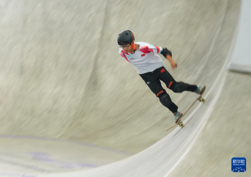 4月12日,2026年亚洲滑板锦标赛男子碗池少年组决赛在四川省眉山市举行。