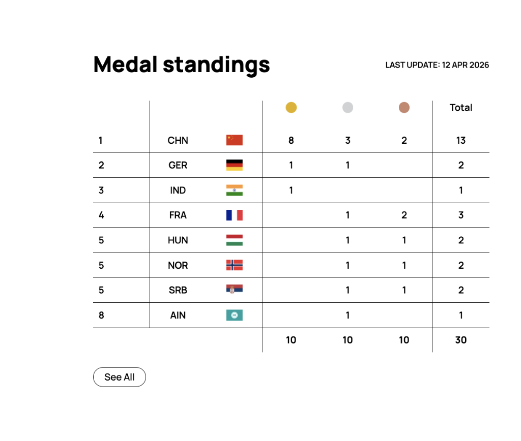 以8金3银2铜断层领跑奖牌榜