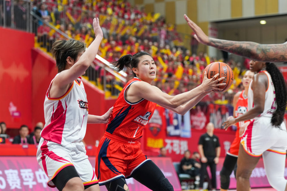 4月14日,四川队球员王思雨(左二)在比赛中突破。新华社记者 王曦 摄