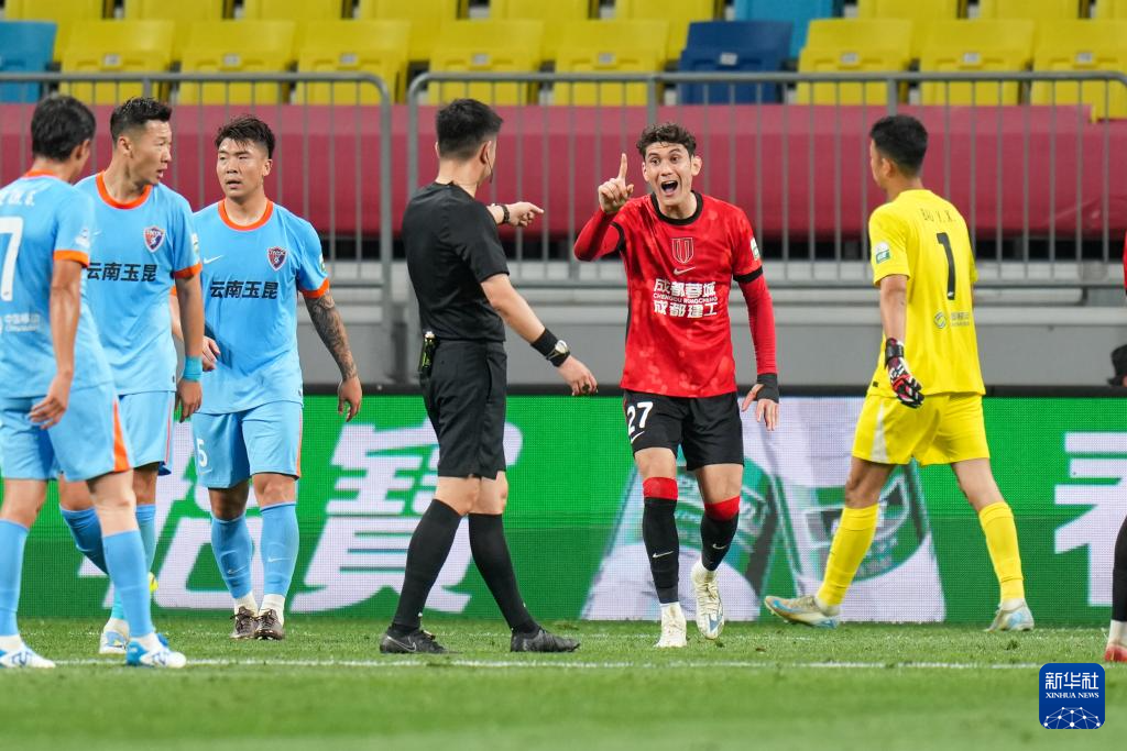 4月21日,在四川成都举行的2026赛季中国足球超级联赛第七轮比赛中,成都蓉城队主场2比1战胜云南玉昆队。