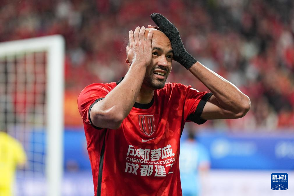 4月21日,成都蓉城队球员费利佩在比赛中错失机会后。