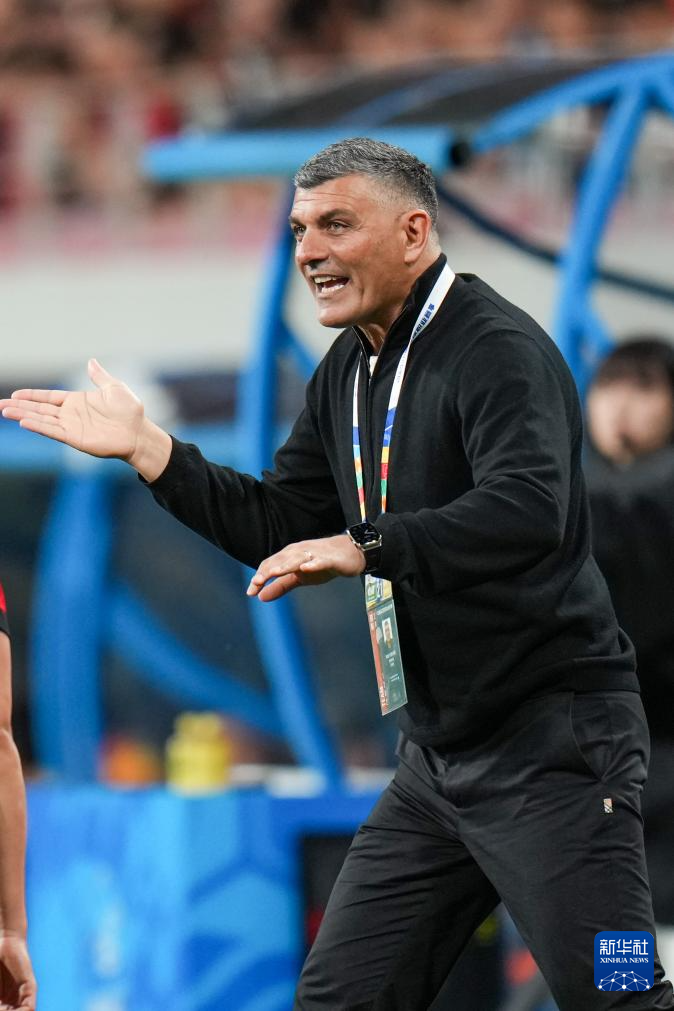 4月21日,成都蓉城队主教练阿洛伊西在比赛中指挥。