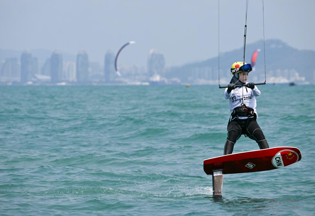 4月23日,中国选手李姝璇在亚沙会女子水翼风筝板比赛中。新华社记者 魏海 摄