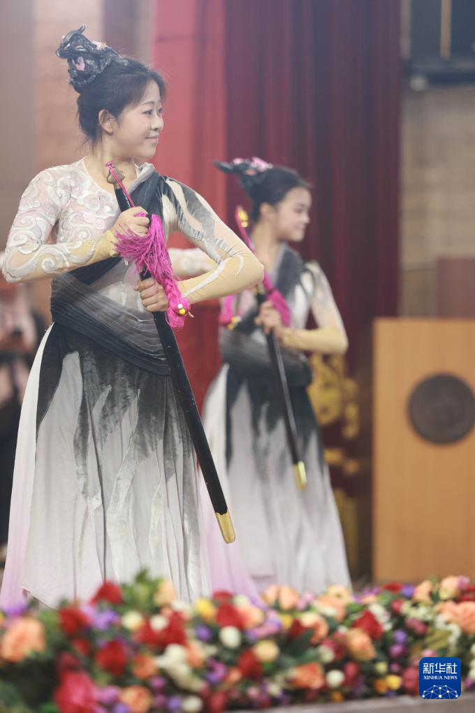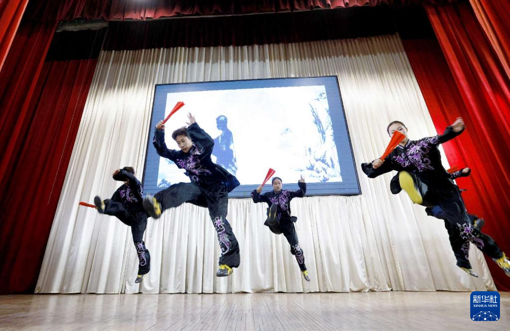 4月23日,在吉尔吉斯斯坦比什凯克,首都体育学院艺术团师生在“华夏风·功夫行”2026年“国际中文日”武术巡演活动中表演。