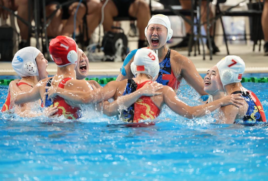 虽然临时换了场地,但中国水球队的姑娘们状态依旧。她们在循环赛最后一轮以3:1力克哈萨克斯坦队,三战皆胜排名积分榜第一,夺得冠军,这也是赛会历史上首枚女子水球金牌。