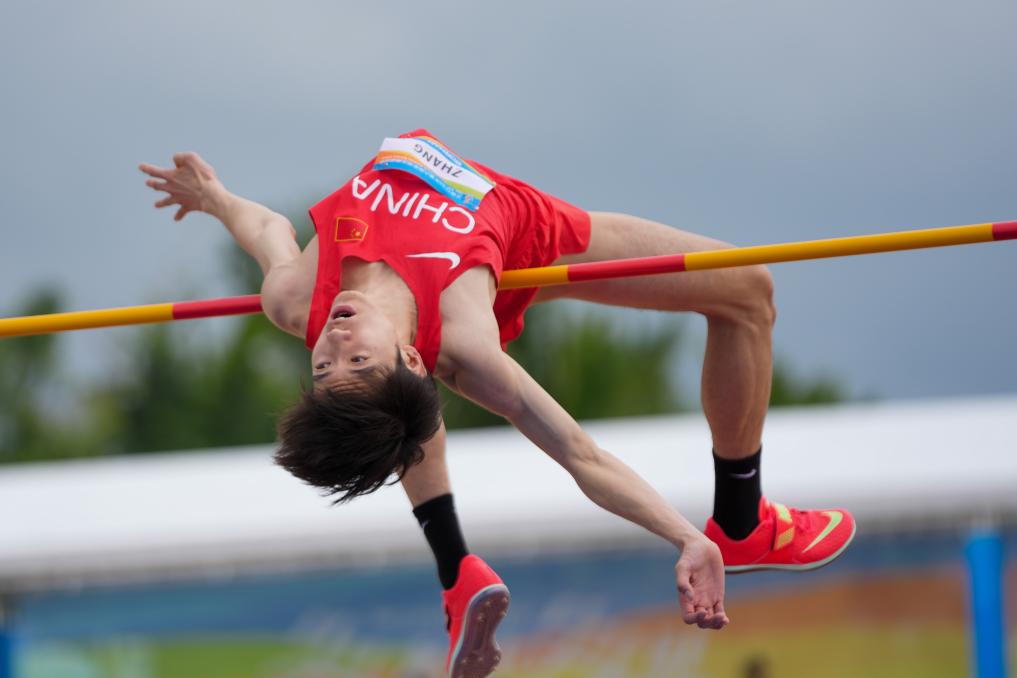 沙滩田径赛场,十五运会男子跳高铜牌得主张昊在跳高决赛中越过2米05的横杆,与菲律宾选手伦纳德·格罗斯佩成绩相同,但由于比对手多跳一次,他最终与中国台北队叶柏廷并列获得银牌。女子跳远决赛中,中国队陈丽文、李智双分获第五和第十名。