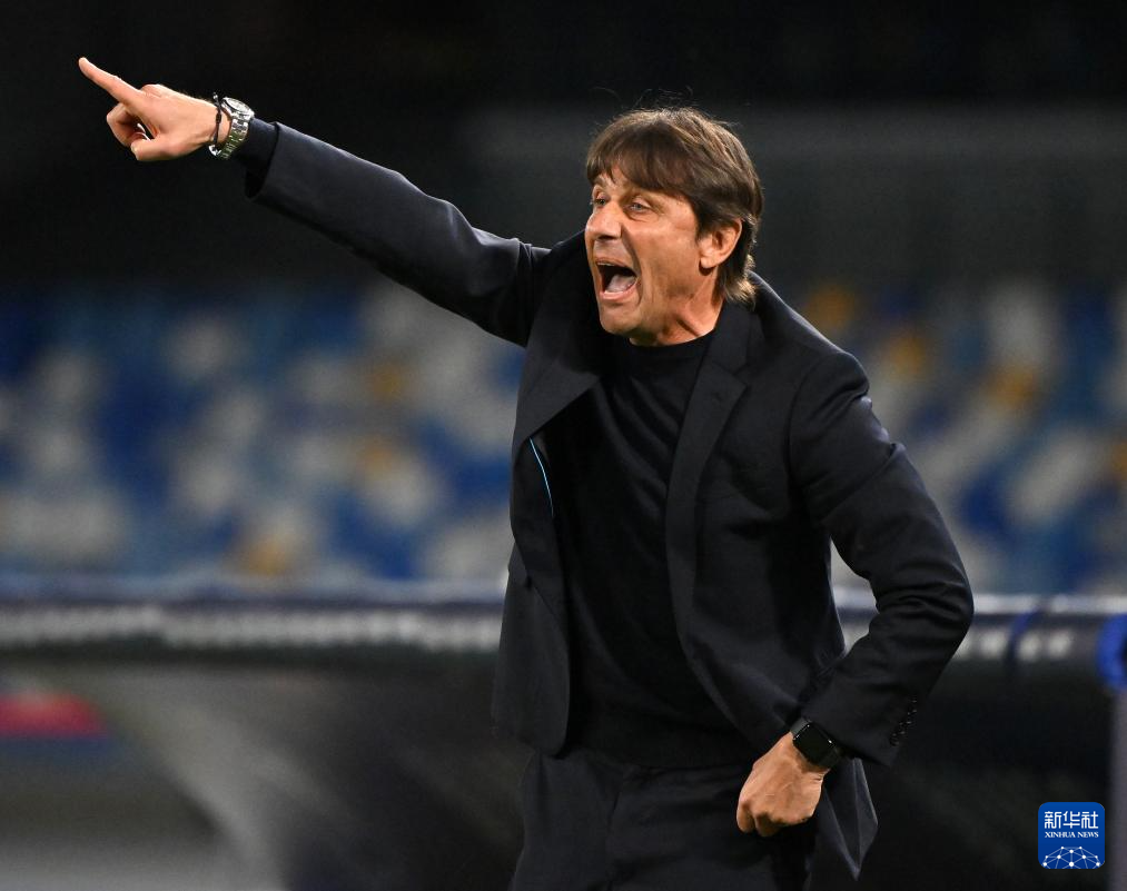 4月24日,那不勒斯队主教练孔蒂在场边指挥。