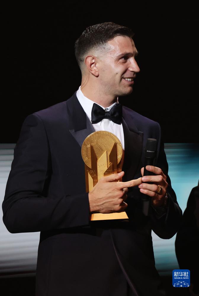 10月30日,阿根廷守门员马丁内斯获颁象征最佳门将的雅辛奖。新华社记者 高静 摄