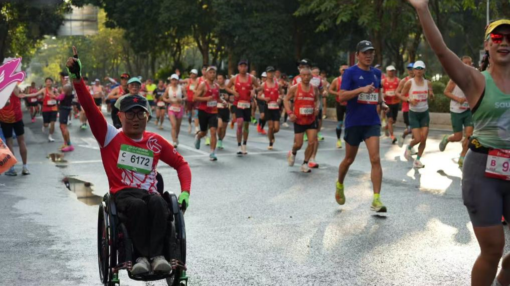 他完成第95场马拉松,坐着轮椅