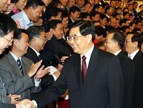 | 温家宝:把经济社会发展切实转入科学发展轨道 | | 新华网北京5月24日电中国科学技术协会第七次全国代表大会23日下午举行全体会议,国务院总理温家宝应邀作形势报告,他强调要全面落实科学发展观,充分发挥科技对经济社会发展的支撑和引领作用,依靠科技进步和创新把我国经济社会发展切实转入科学发展轨道。 [详细报道] | | | | 中国科协第七次全国代表大会开幕 胡锦涛等出席 | | 新华网北京5月23日电(记者 邹声文 卫敏丽) 中国科学技术协会第七次全国代表大会今天上午在人民大会堂隆重开幕。1200多名优秀科技工作者代表,肩负着全国2100万名科技工作者的重托,出席我国科技界的这一盛会。胡锦涛、温家宝、曾庆红、吴官正、李长春、罗干等党和国家领导人到会祝贺。 [详细报道] | | |