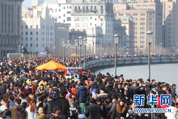 2月8日,上海外滩游人如织。 新华社记者 丁汀 摄