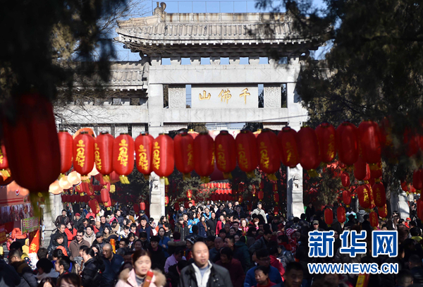 2月8日,众多游客在济南千佛山游览。 新华社记者 朱峥 摄