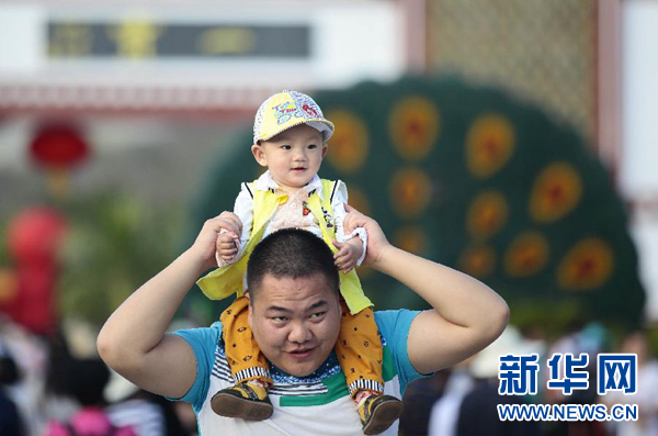 家长带孩子在海南三亚南山文化旅游区游览(2月13日摄)。 新华社发(陈文武 摄)