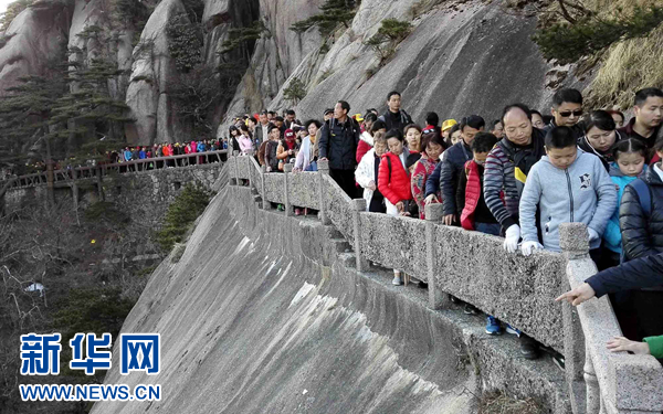 游客在游览黄山(2月10日摄)。 新华社记者 刘卫兵 摄