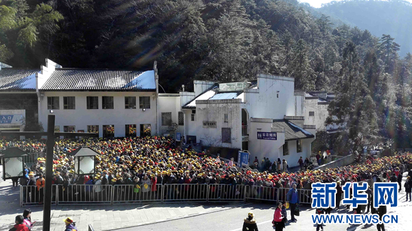 游客在黄山索道处排队(2月10日摄)。 新华社记者 刘卫兵 摄