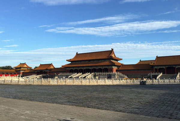 2016年8月19日,蓝天白云映衬下的故宫景色。(张晋-摄)