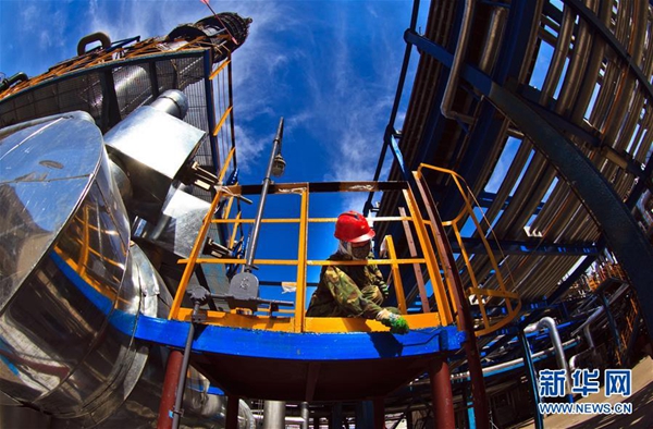 国有企业改革在各地推进。新中国第一家化工企业——吉林石化公司2014年减亏增效11.9亿元,这是工人在维护该公司新建千万吨炼油基地(2015年9月18日摄)。