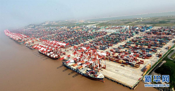 这是航拍的上海自贸区洋山港集装箱码头(2014年9月29日摄)。