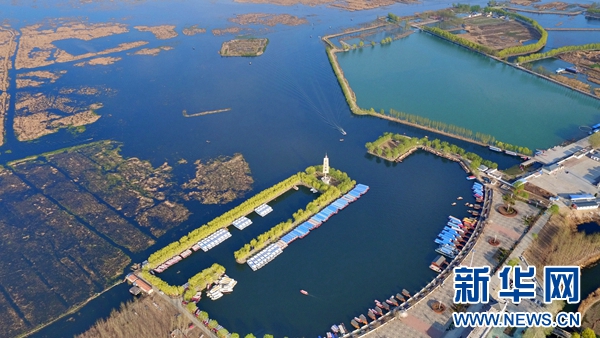 俯瞰河北省安新县境内的白洋淀(3月31日摄)。新华社记者 杨世尧 摄