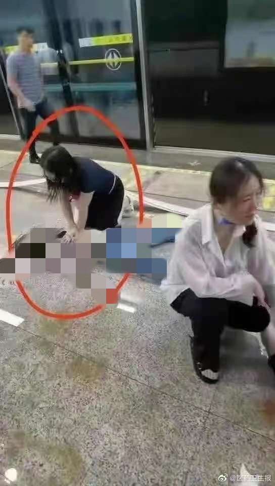秦杰林下意识地跑过去,发现地上躺着一个呼吸微弱的女孩,当即冲过去做起人工呼吸,还有两个男孩一起配合着做完五轮的心肺复苏。