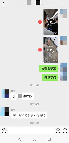 当时车厢里的水位已经到了座位下,司机紧急关闭车门。这时车厢里每个人都开始想尽办法向外界求援,整个车厢通风还比较顺畅,秦杰林开始给同学发微信。